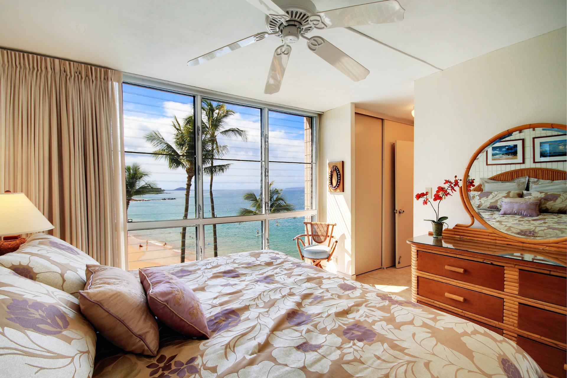 The master bedroom offers a spacious King bed, flat screen TV and an updated, private bath. Wake to an ocean view from your bed.